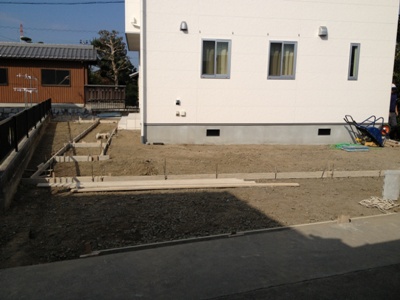 現在は外構工事中で、現状は間違いのない信頼できる業者さんとして紹介させて頂いた外構業者さんによって工事が進行しています。