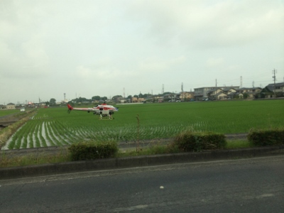 朝一番に家造りの現場へ向かう道沿いの田には水が張られて、農作業用のラジコンのヘリが飛び交っていました。
