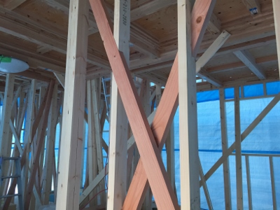 住宅の内部では、大工さんが軸組部分の工事を開始しています。