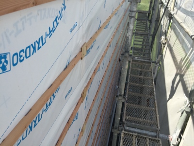今日の通気層の為の工事が完了すれば、外装工事の準備は完了です。