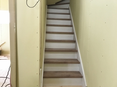 瑞穂市内の家造りの現場では、1階と2階を繋ぐ階段が出来上がりました。