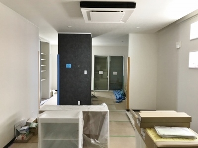 住宅の特徴となるリビング空間の広い学習コーナーの工事も進んでいます。