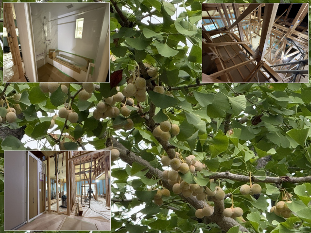 銀杏並木が連なる遊歩道の場所では、銀杏の木に実がたわわに実りだしています。