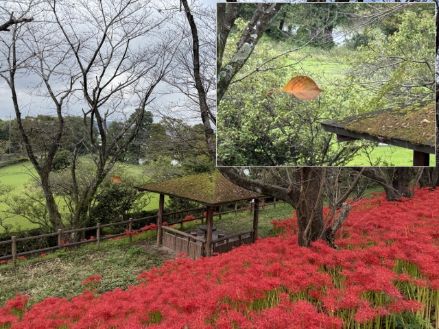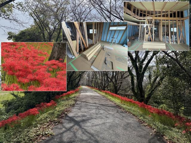 例年よりも少し寂しい彼岸花で覆われたの堤も満開を迎えた彼岸花の紅彩で真っ赤に染まっている道となっています。