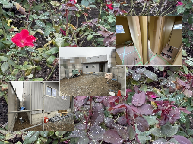 一昨日から始まった敷地内の給排水配管工事は、雨水配管と雨樋の接続、汚水桝と排水配管の接続工事を残して各配管設備工事が出来上がっています。