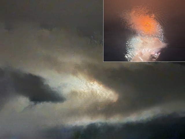 これから夜空に上がる花火を楽しめると思っていた人々も多かったと思いますが、花火の煙か?雲?が広がって、