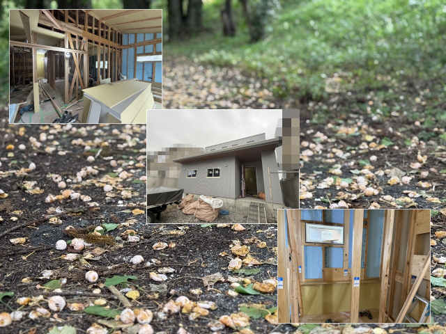 WB HOUSEの屋内で進む大工さんによる造作工事は、玄関土間ホール内壁の工事が完了して現在は二つ目のトイレ内壁の補強下地工事を進めています。