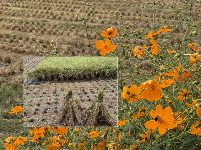 遅植えの田も最後稲刈りが終わりを迎えようてする季節になってきました。