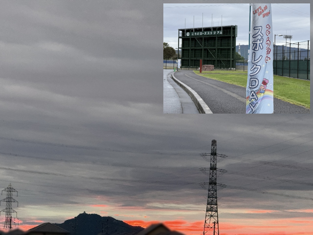 早朝は雲に覆われてわずかに朝焼けが見える空。