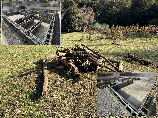 薬木の広場では、伐採された樹々の枝が積まれて越冬の準備が始まっているようです。