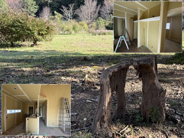 今日も内装工事業者さんによる施工前の下地調整作業が進められています。