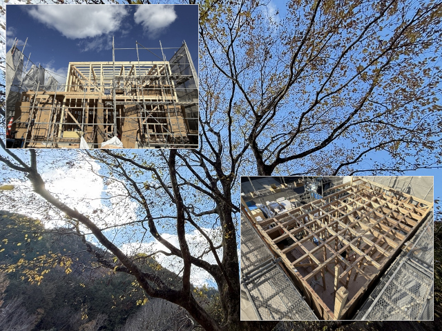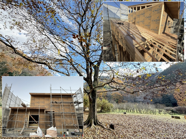 落葉舞う上棟日