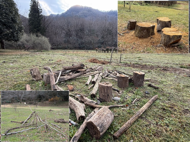 ここではいつも訪れた人や子供達に手にであろう切り株や枝を使って住まいの囲いやテント、食卓テーブルや椅子を作った風景を見るのが楽しみになっています。