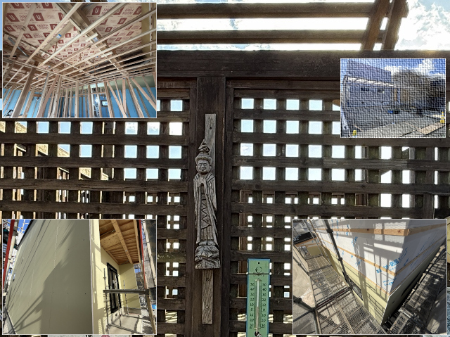屋外での続く外装工事の防火層の工事はWB HOUSEの新築住宅の1階部分の範囲の施工が完了する状況です。