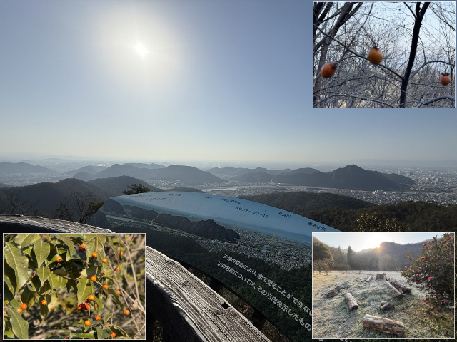 百々ケ峰までの道には今日も山茶花の花や昨日の?だった実の小柿(またはキカラスウリが有力候補)を見ながら、