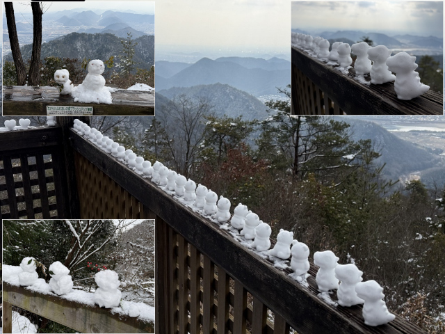 展望台の手すりは小さな可愛い雪だるまのパレード。