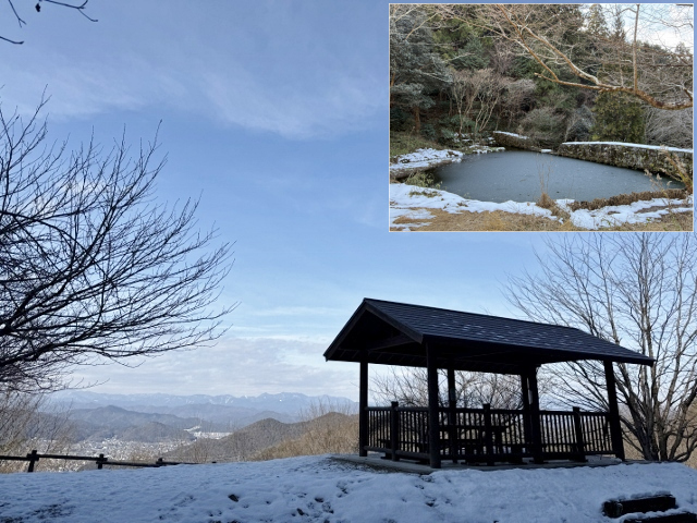 桜の広場の池の氷はやっと池の周りから氷が溶けだしていましたが、少し登った三田洞展望広場では雪が残っています。