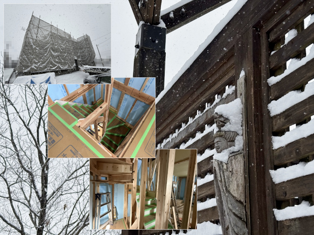 「もう道路の雪が溶けてるよ」と、再び家造りの現場へ。