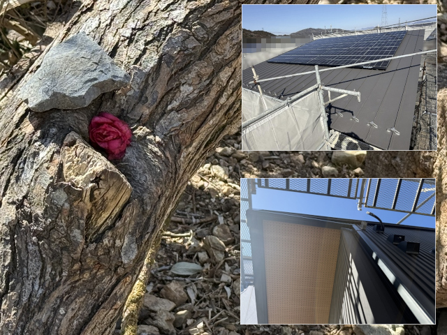 今日もWB HOUSEの屋内での造作工事は続く新築住宅の外部では、昨日の屋根の上での太陽光発電システムのパネル工事の完了に続いての建築工事工程。