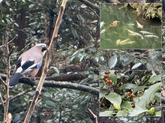 冬の終わりを告げるようにコバルトブルーのカケスが飛び交い、