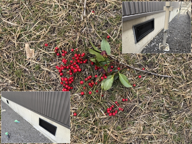 今まで全盛だった南天の実から次第に春を告げる花の蕾に主役を譲ろうとしています。