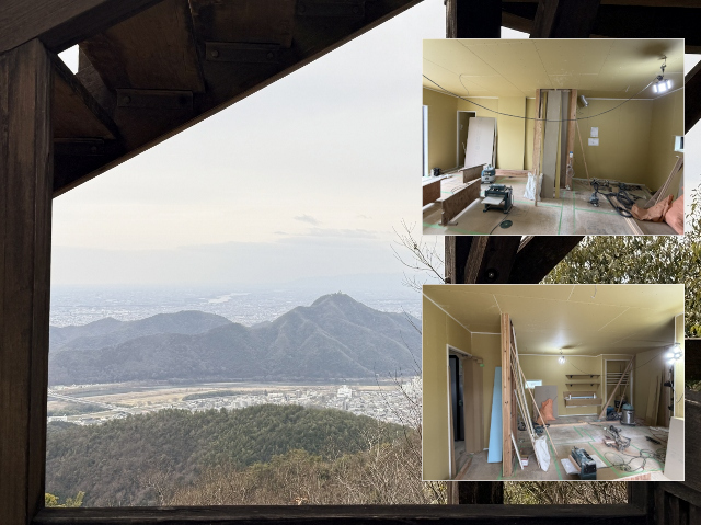 百々ケ峰展望台の広場から見える霞んだ空気の中となった岐阜市街地の風景の中の一角となる岐阜県岐阜市内のお客様御家族の毎日の快適な暮らしへのこだわりを叶える自由設計のWB HOUSEの新地注文住宅の家造りの現場。
