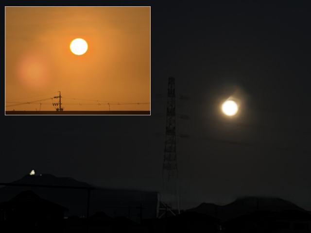 ピンクムーンとオレンジの太陽