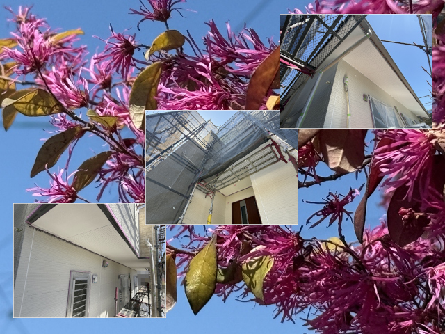 すっかり晴れて外装部も乾燥したWB工法の住宅では、今日は軒天の塗装工事が実施されています。
