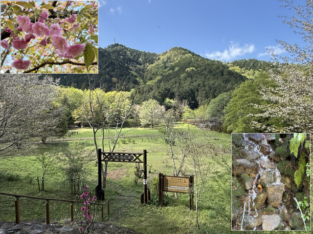 三田展望広場では、山桜から最後の桜となる関山(カンザン)の花が満開を迎えています。