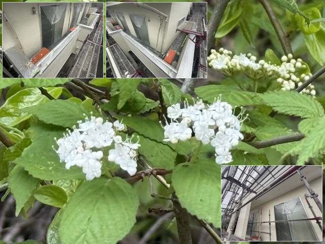 山道の傍らに咲くコバノガマズミの花はこれからの状況に。