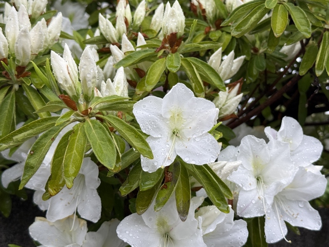 今日も朝まで降った雨で雨雫をたたえてたツツジの花をみながらの幸せ家造り工房の一級建築士の建築家としての活動の一日。