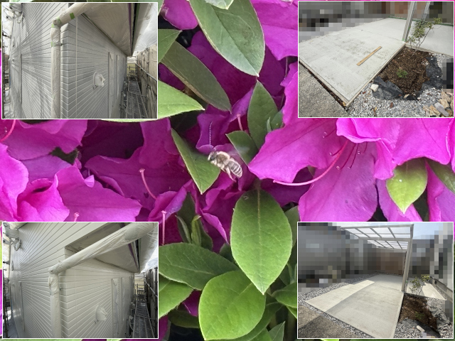 足場解体後、敷地内の清掃作業が実施されて外装リフォーム工事の全工事工程の完了です。