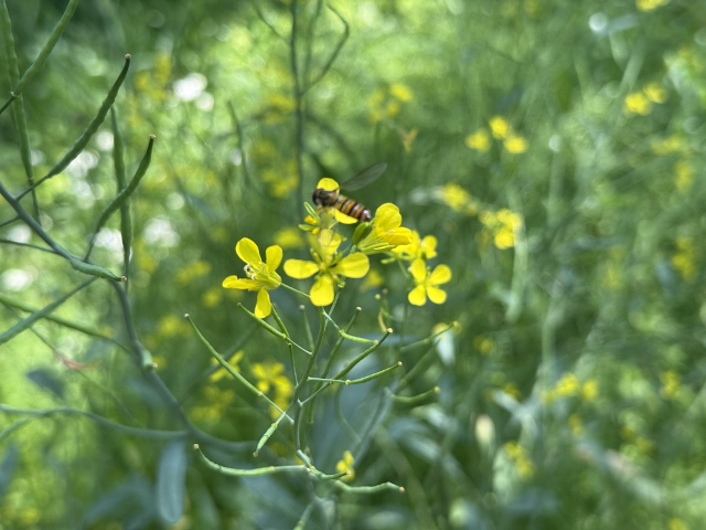 輪中堤の道の散策では、輪中の道や遊歩道に咲く野の花の間を飛び交う蜂さんや蝶々さんの姿を楽しめるのもこの季節です。