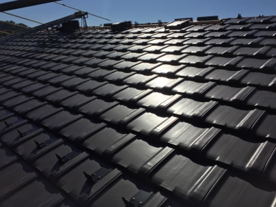 屋根防水のルーフィングの状態の屋根の光景から今は、陶器瓦が屋根全体を覆っている光景に変わりました。