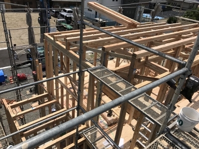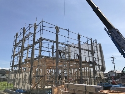 7月の快晴の日となった良き日に家造りの現場では、お客様御家族の待ちに待った上棟工事が実施されました。